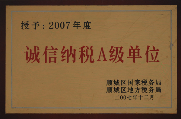 2007年度誠信納稅A級(jí)單位
